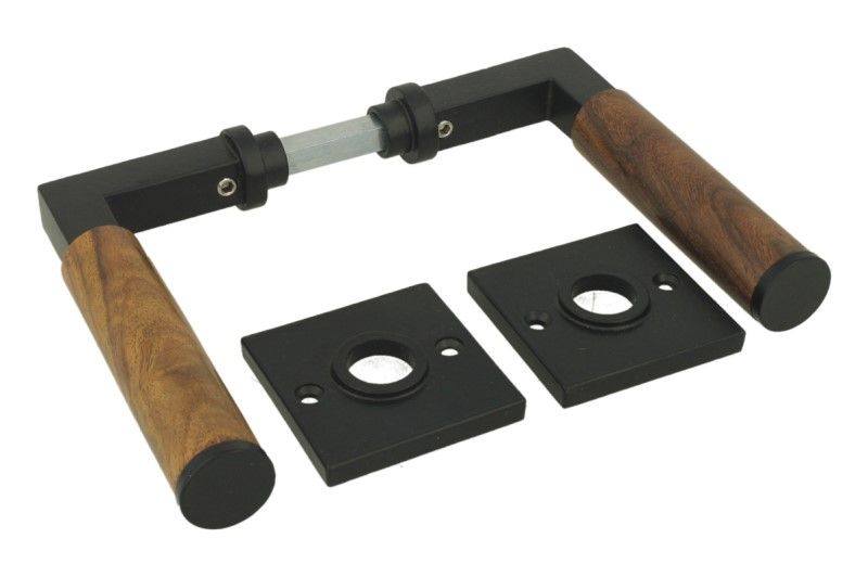 Deurklink "Bauhaus" gietijzer zwart poedercoat met teakhout