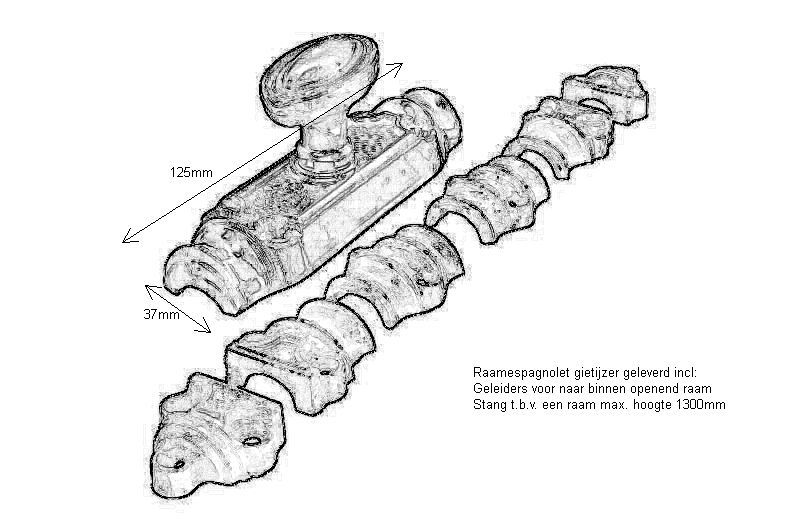 Crémone en applique pour fenêtre en fonte bouton ovale