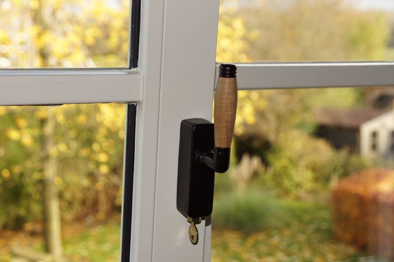 Poignée de fenêtre à clé noire en fonte bois teck