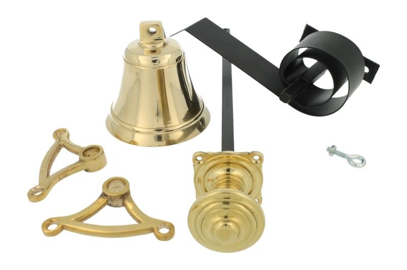 Ronde sierlijke knop, bel, veer, 2x tuimelaar, trekstang met rozet